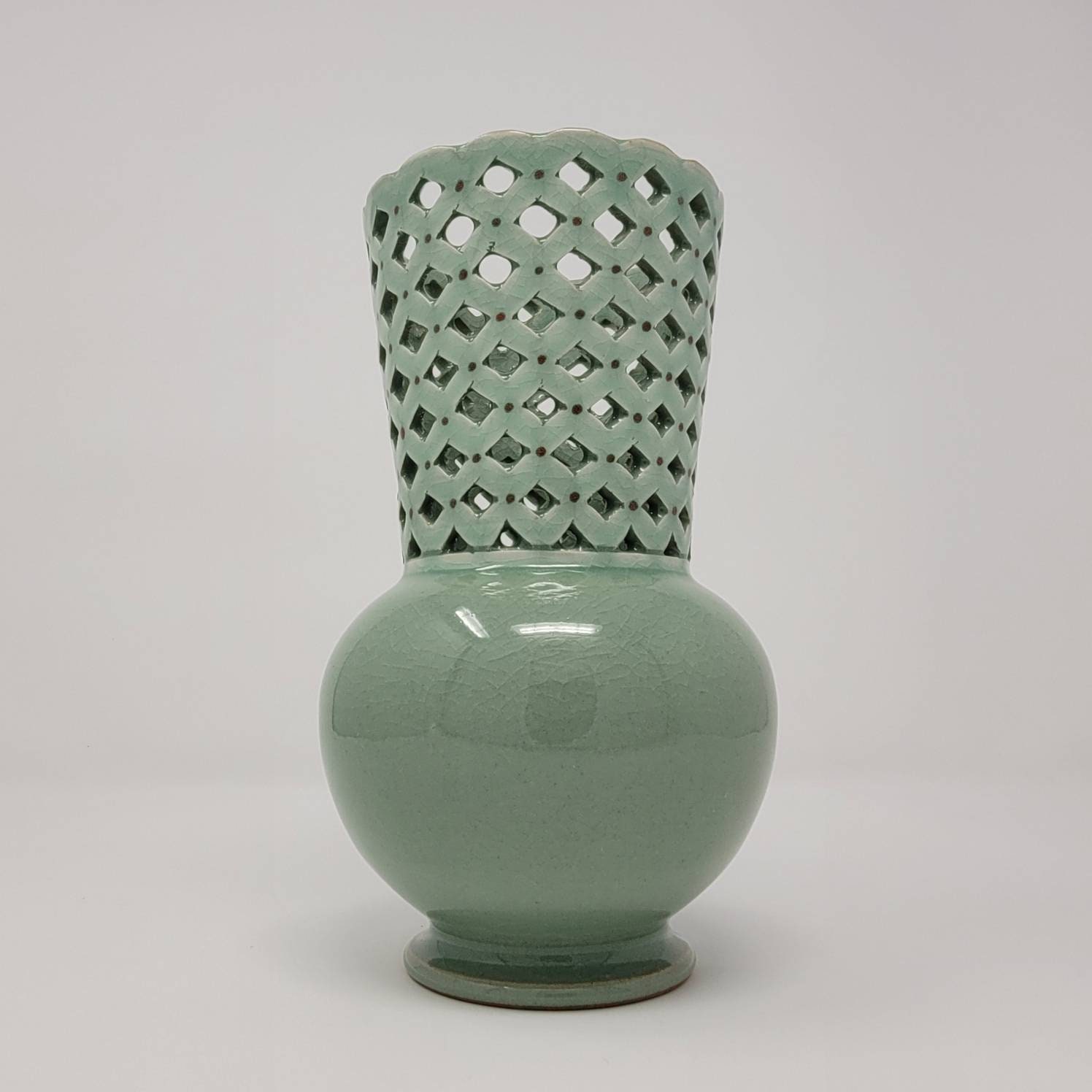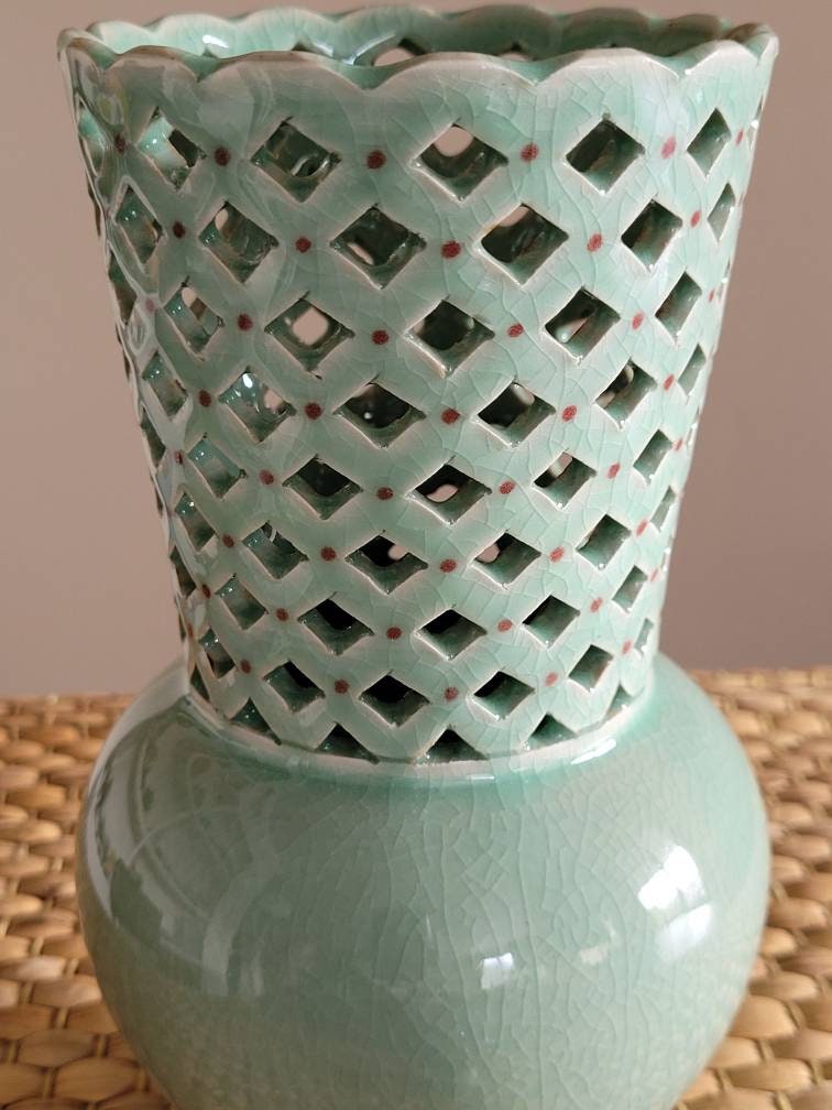 Widely praised for its translucent jade-colored glaze and unique inlaid designs, Goryeo celadon ware was first produced between the late 9th and early 10th centuries and reached its pinnacle in the 12th. The celadon pottery of this golden age is distinguished by elegantly brilliant surfaces and the use of a creative new inlay technique in which white and red slip is inlaid into the surface to form various designs in contrasting colors.